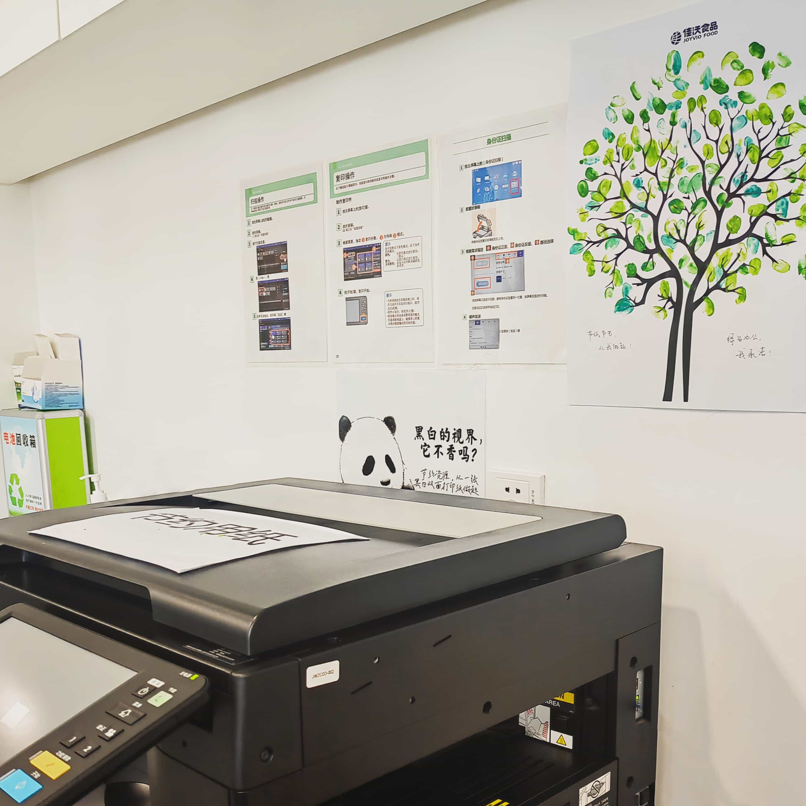 在辦(bàn)公區域,全面提倡節約用電,充分利用自然光照,杜絕浪費使用“長明燈”,節約使用空調,會議室無人使用時及時關燈關空調;節約用水,洗手時将水龍頭擰至小水流,不用時及時關閉(bì)水龍頭,減少擦手紙使用張數,未飲用完的瓶裝水及時拿回工位,杜絕浪費瓶裝水;節約用紙,使用雙面打印,充分利用辦(bàn)公系統,減少紙張使用,多使用黑白打印,減少彩色打印。