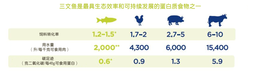 與牛肉和豬肉相比,三文魚的二氧化碳排放量較低。因此,相比其他養殖産(chǎn)業,三文魚養殖更是一個(gè)資源節約型的養殖産(chǎn)業。